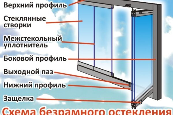 Виды конструкций и технология безрамного остекления Выделяют три вида систем остекления: открывающиеся книжкой или гармошкой с нагрузкой на верхний профиль;
